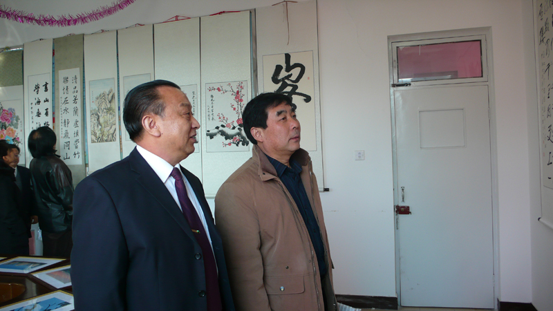 董事長張?zhí)m柱陪同建設(shè)局領(lǐng)導(dǎo)參觀十周年書畫展
